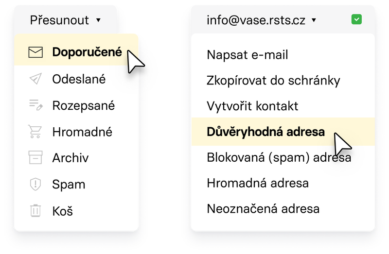 - V rozbaleném menu ji označte jako důvěryhodnou adresu.