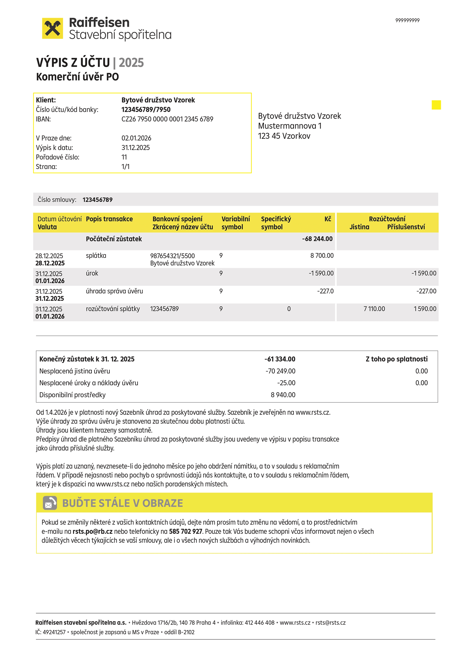 Konečný zůstatek na úvěrovém účtu k 31.12.2025.