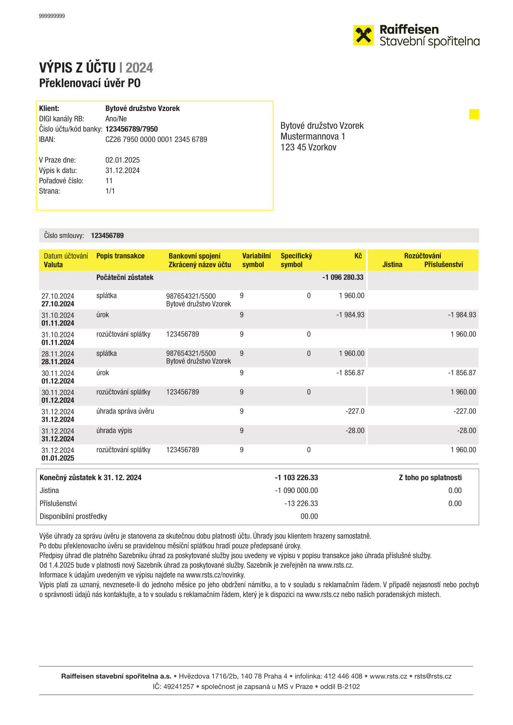 Konečný zůstatek na úvěrovém účtu k 31.12.2024.